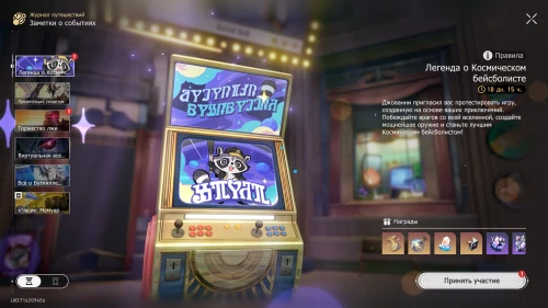 Когда разберетесь с указанными требованиями, у вас автоматически должна будет начаться стартовая миссия «Легенда о Космическом бейсболисте». Если этого не произошло, то откройте свой Журнал путешествий, отыщите необходимый ивент и на его страничке нажмите на кнопку «Принять участие»