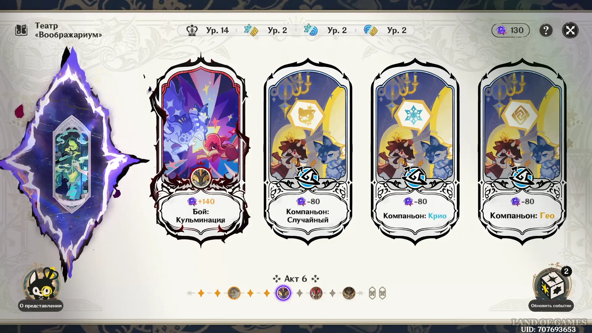 - Так как босса 6-го акта сложно победить без гео персонажей в команде, постарайтесь заранее вытянуть их из карт компаньонов, а также прокачать баффы с гео.