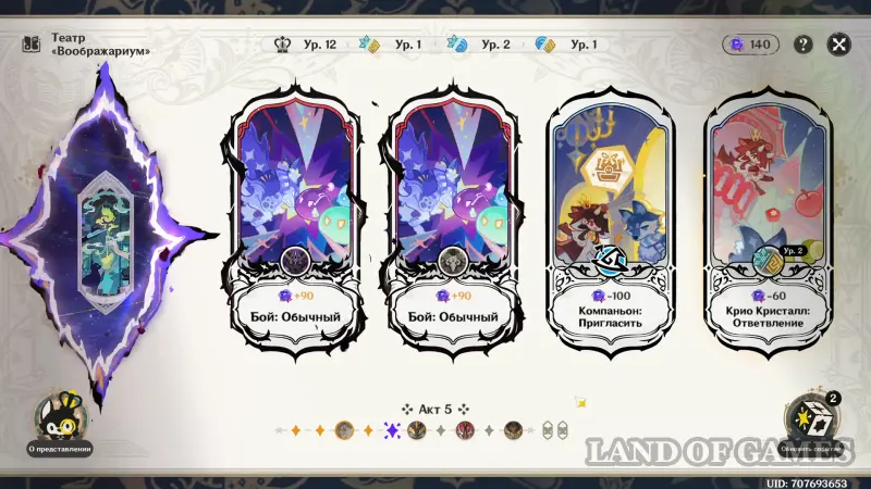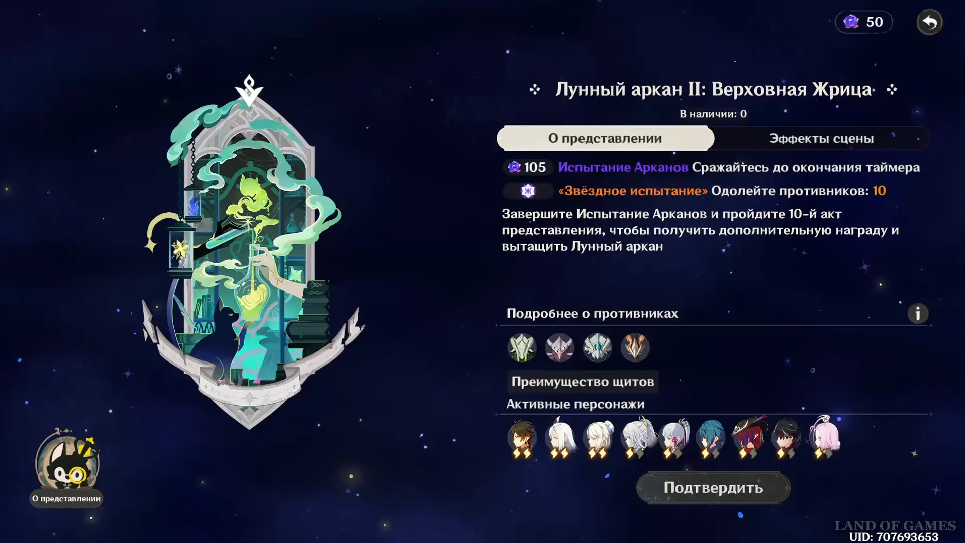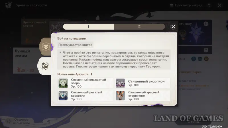 При прохождении вы можете повстречать испытания Лунных Аркан с разными названиями, однако состав противников и условия боя в 4 и 7 актах у них будут одинаковы в любом представлении.