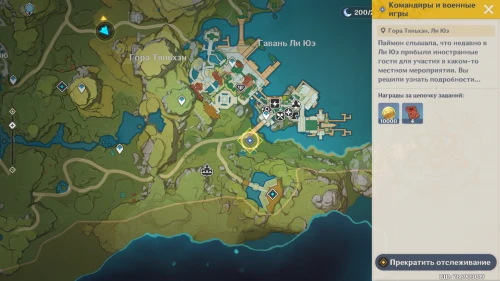 Паймон услышала, что в Ли Юэ приехали иностранные гости, дабы поучаствовать в местном мероприятии, организованном Миллелитами. Она предложит вам узнать об этом поподробнее. Переместитесь к юго-восточному телепорту Гавани Ли Юэ, а затем пройдите по мосту на юго-запад. Там вы обнаружите группу солдат.