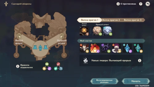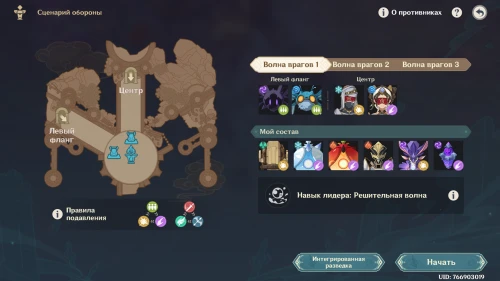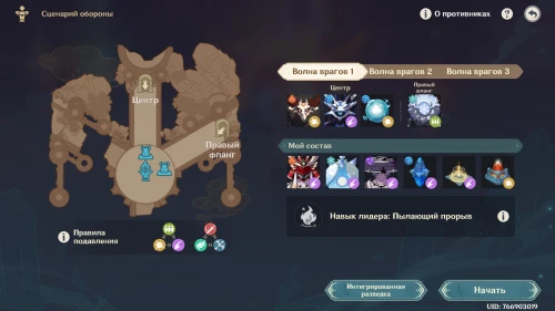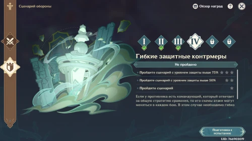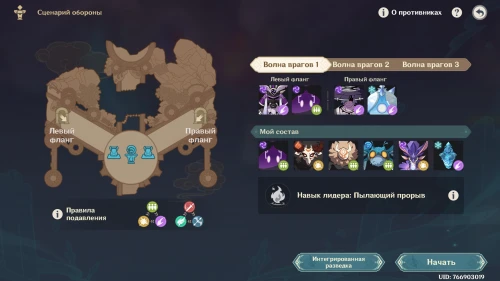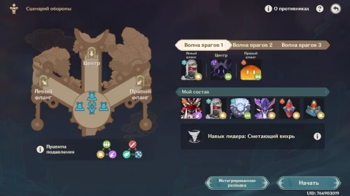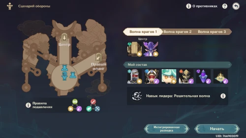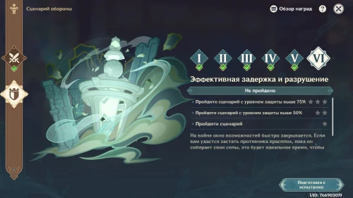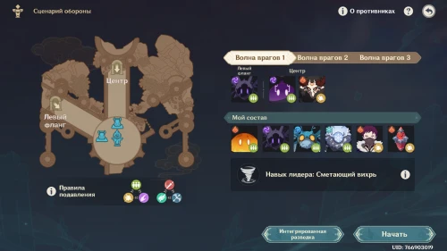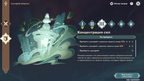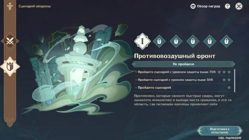 В этой активности вам предстоит размещать укрепления и применять навык лидера, чтобы отбивать атаки чудовищ, насылаемых противником. Перед сражением вы можете просмотреть сведения о волнах врагов. Каждый раунд включает в себя 3 волны, и во всех них монстры будут изменять направление атаки. Для изучения информации нужно нажать на надпись «Подготовка к испытанию» в верхнем левом углу.