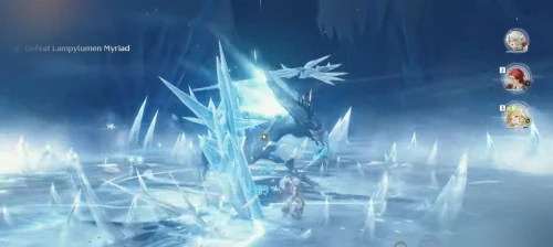 У Мириады есть одна АоЕ-атака, когда он вонзает коготь в землю и покрывает всю арену льдом. Затем босс повисает в воздухе и медленно крутится вокруг себя, не атакуя игрока — в это время вы можете использовать все доступные навыки и нанести множество урона.