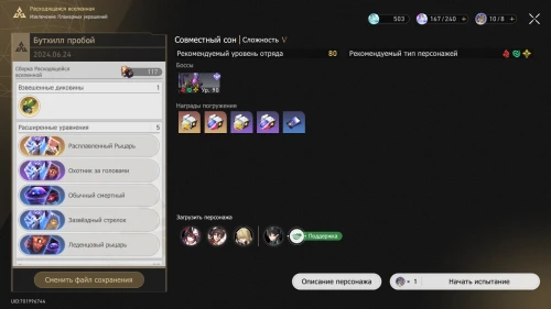 Именно здесь и пригодятся файлы сохранения, оставшиеся после прохождения Обычного и Цикличного вычисления. Выберите нужную вам запись. Напомним, что в них остается информация лишь о собранных благословениях, уравнениях и диковинах. Это значит, что состав вашего отряда может отличаться от предыдущих испытаний. Также у вас будет возможность взять одного персонажа поддержки.