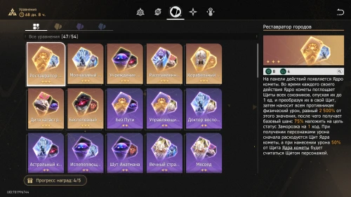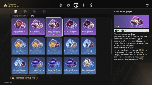 Данные баллы также зарабатываются прохождением различных Вычислений. Потратить из можно в разделе Цепь вдохновения. Там очки используются, чтобы повысить базовые характеристики персонажей в рамках Расходящейся вселенной. Здесь же можно активировать различные бонусы, облегчающие испытания, например, открыть доступ к расходным предметам или повысить базовое количество космических фрагментов.