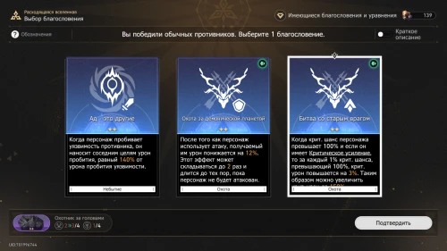 Первый такой бафф можно получить сразу после входа в Расходящуюся вселенную. Зачастую именно от представленных начальных вариантов вы будете отталкиваться при подборе отряда для прохождения первых нескольких боевых испытаний. Также уравнения выдаются за победу в зонах босса и некоторых случайных событиях.