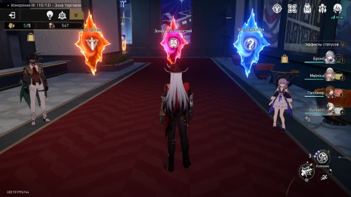 Валютой, которую вы сможете использовать во время разведки, здесь также являются космические фрагменты. При этом способы их траты отличаются от обыкновенной Виртуальных вселенной. У вас не будет возможности сбросить благословения, выдаваемые на выбор после завершения битвы. А вместо привычных зон отдыха вы будете чаще сталкиваться с зонами торговли, в которых Скрюллум и Герта предложат вам ассортимент различных диковин и баффов.