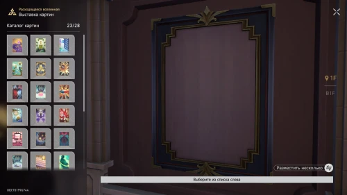 - В зоне картин вы сможете разместить полотна, напоминающие об определенных испытаниях и событиях Виртуальной и Расходящейся вселенных. Они не дают каких-либо усилений и являются лишь предметами интерьера.