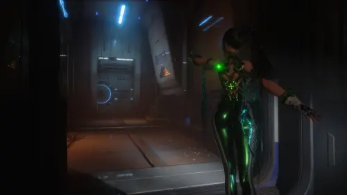 Приобретается на втором прохождении после исследования локации Шпиль-4 у Роксаны. Однако вначале вам нужно будет поговорить с посредником возле входа в Ксион. Затем соглашаемся отправиться к дилеру и попадаем в точку возле доски объявлений в городе. Здесь находим девушку и покупаем у нее выкройку нового облегающего наряда. Цена облика — 6 виткоинов.