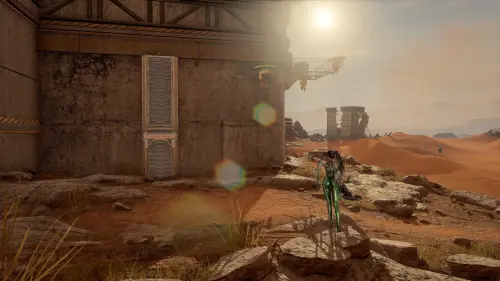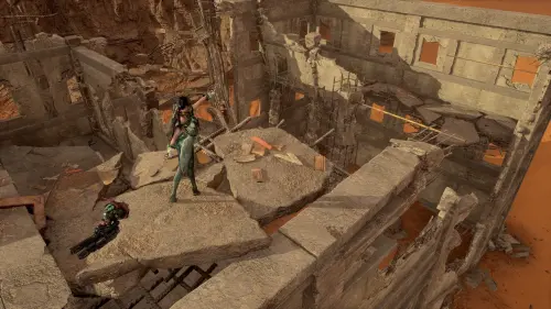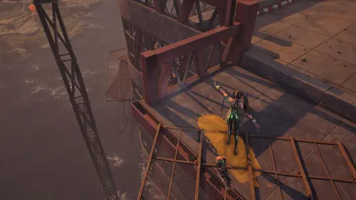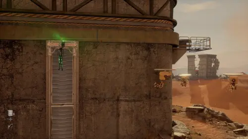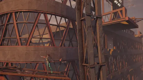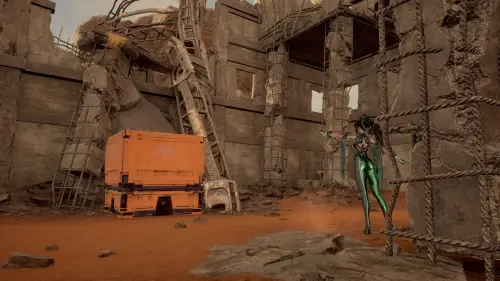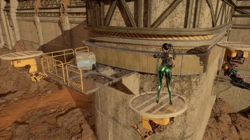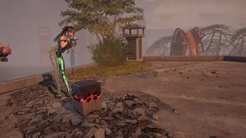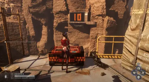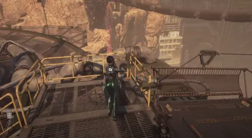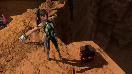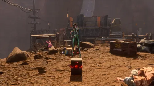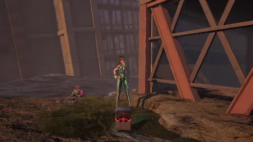 Отправляйтесь в северо-восточную часть пустоши, чтобы решить небольшую головоломку. Передвиньте две тележки на нажимные пластины, после чего откроются ворота. Вкатите в них огромный оранжевый контейнер и тоже установите его на плиту, затем заберитесь на нее и вскарабкайтесь по веревке наверх. Далее пройдите небольшое испытание по стрельбе, поразив все цели, кроме красных. В итоге вы разблокируете сундук и сможете забрать наряд.