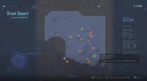 Первым делом получите поручение «Ценное сокровище», провзаимодействовав с доской объявлений в Ксионе. Отправляйтесь на разрушенную эстакаду в Великой пустыне, точное место показано на изображении ниже. Подорвав взрывоопасные бочки, вы сможете подняться по опрокинутому автобусу на противоположную сторону, именно там будет сундук с обликом. На этот скин не нужно тратить материалы, он появится в каталоге автоматически.