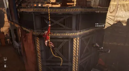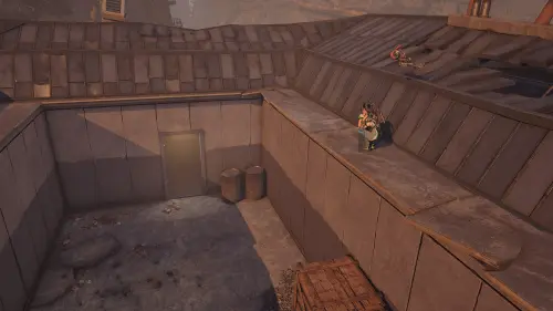 Попадите по двум мишеням в месте, показанном на скриншотах ниже, чтобы спустились канаты, по ним вы сможете попасть на крышу здания, внутри которого будет заветный сундук с чертежом скина.