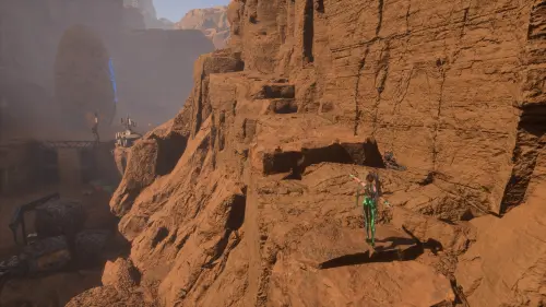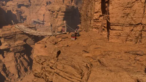 Отправляйтесь на северо-восток от Солнечной башни в указанной области, а затем заберитесь на склон, где вы обнаружите трех противников. Разберитесь с ними и двигайтесь на восток, спрыгнув на выступ внизу. Здесь вы найдете ящик с нужным нарядом.