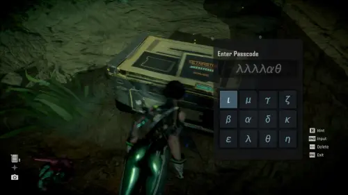 Этот соблазнительный наряд находится в сундуке под водой к западу от лагеря снабжения. Для начала направляйтесь к небольшой постройке к юго-западу от Тетрапода, а потом воспользуйтесь выдвижными уступами, шестами и роботами, чтобы добраться до входа. Спуститесь вниз и заберите код доступа с трупа человека: λλλλαθ. Далее переместитесь в лагерь снабжения «Оазис» и прыгните прямо в воду, чтобы разблокировать ящик с помощью пароля и забрать наряд. Здесь мы подробнее рассказали о нахождении кода.