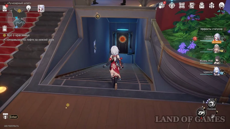 Продолжаем заданное ранее движение на север: у южного края прохода на 1-м этаже можно заметить алый шарик босса Камня, в котором скрылась пернатая любительница наблюдений.