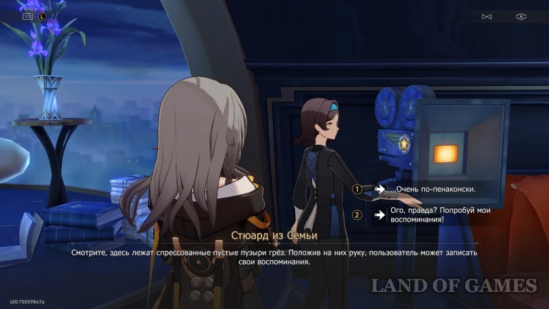 Итак, на наше сообщение откликаются Март 7, Химеко и Вельт. Вся компания выслушивает инструктаж от Стюарда и знакомится с механикой проектора, основанной на технологиях «Сада воспоминаний». Остается выбрать, какие памятные моменты мы хотим разделить с друзьями.