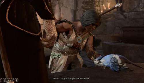 В покоях целительницы Нетти, при первой встрече с ней вы увидите как она лечит раненую птицу. После разговора с Нетти, при взаимодействии с птицей, Темный соблазн может выбрать «Оторвать ей крылья».