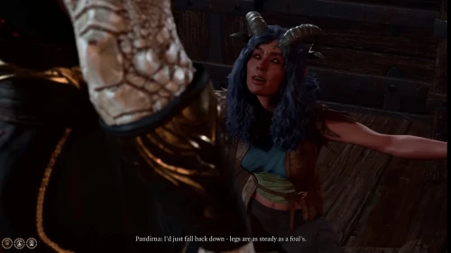 На складе припасов тифлингов находится девушка Пандирна у которой отнялись ноги после зелья Карги. У Темного соблазна также будет вариант воспользоваться беспомощностью девушки и убить ее на месте быстрее, чем она позовет на помощь.