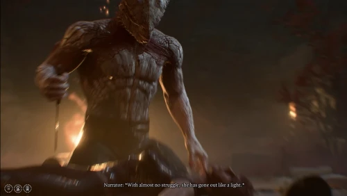 Если вы выберете «Каким бы оно ни было, это то, чего ты заслуживаешь» или «Силы тебе не занимать. Ты одолела нетерийский мозг. Неужели ты не сможешь взять верх над Владыкой Убийств?». В этом случае Баал решит наказать свое отродье и сделать его окончательно безумным.