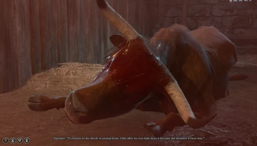 В Таверне Последний свет можно найти Странного вола, которого прежде можно было видеть в Изумрудной роще в первом акте. Если уговорить его открыть свои секреты, вол покажет Темному соблазну воспоминания своих кровавых деяний. Темный соблазн может сделать уникальный выбор «Теперь показать волу глубину своих испорченных мыслей» и накинуться на него с кинжалом. После смерти вол примет свой настоящий облик.
