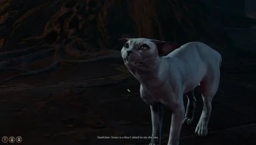 Обследуя Лунные башни снаружи можно наткнуться на кота по имени Стальной коготь (X:-136, Y:-224). Необходимо поговорить с котом, используя заклинание «Разговор с животным». Кот сразу вспомнит Темного соблазна и будет настроен к нему агрессивно, угрожая расправиться с ним. Если выбрать «Попробовать вспомнить то, что было забыто», Темный соблазн убьет кота.