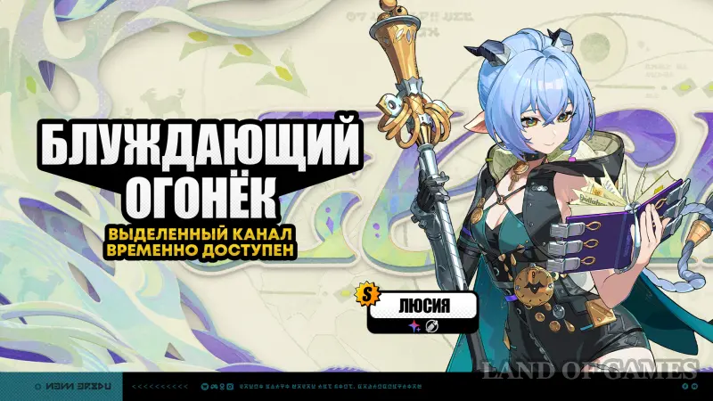 В рамках него повышена вероятность выпадения Люсии, которая обладает атрибутом Эфир и относится к специальности Поддержка. В отряде она может играть роль саппорта, способного повысить силу сквозной атаки, критический урон, общий урон и здоровье, а также исцелять союзников с помощью ульты.