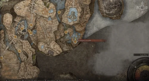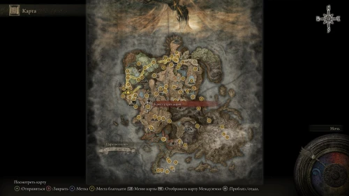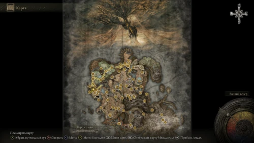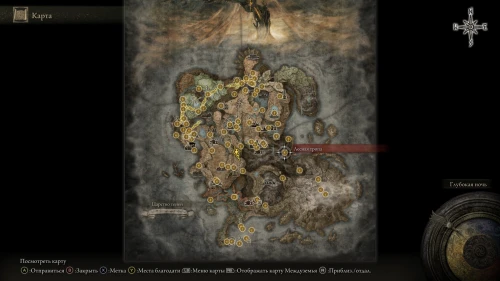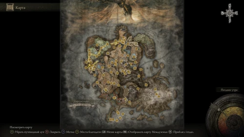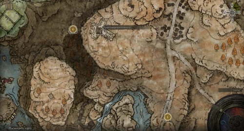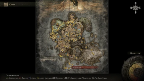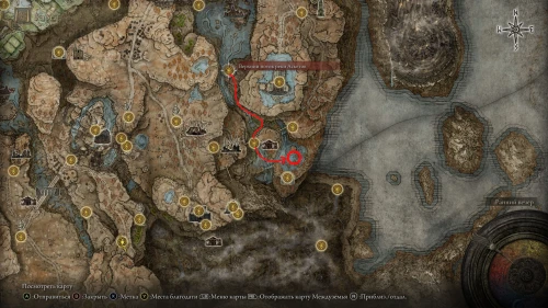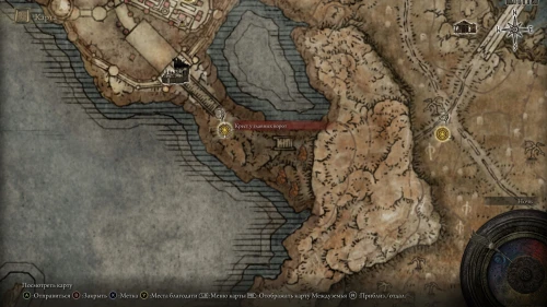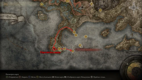 Переместитесь или доберитесь до места благодати «Лазурное побережье» (мы в деталях показали, как это сделать в гайде по поиску карт локаций), а затем начните двигаться на юг, пройдя мимо дракона. Поднимитесь по склону наверх, пробежав рядом с Путеводной стелой, а потом сверните на юго-восток и скачите к кресту Микеллы, виднеющемуся впереди. Здесь вы обнаружите место благодати «Крест на лазурном побережье» и необходимый вам фрагмент.