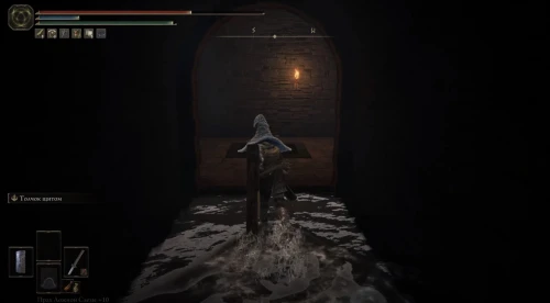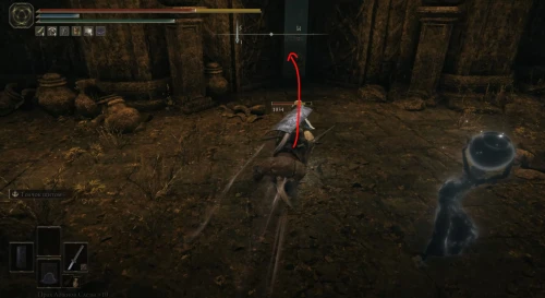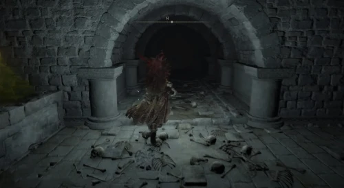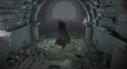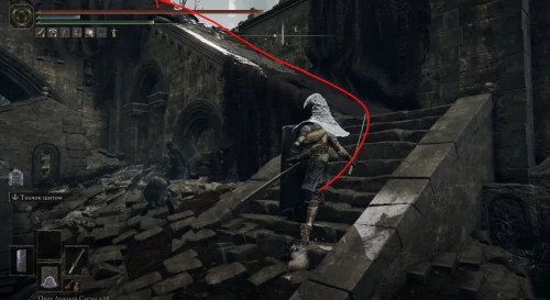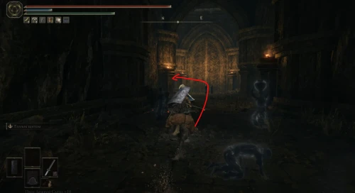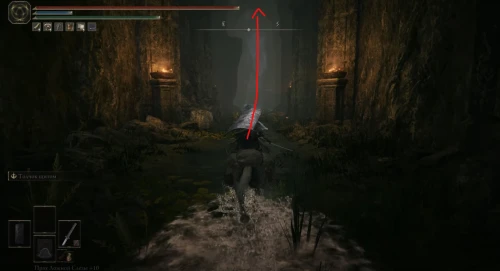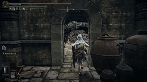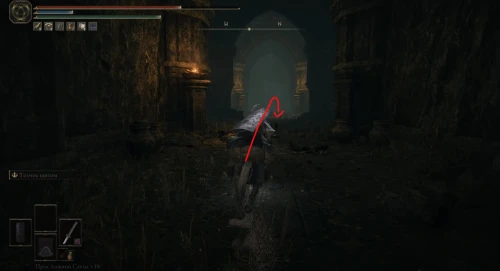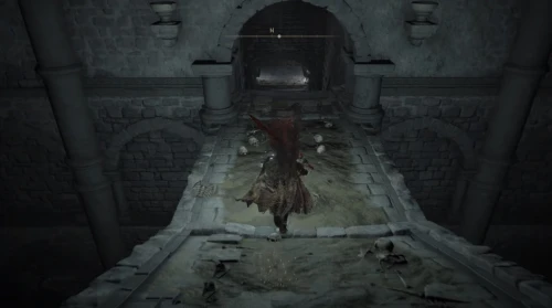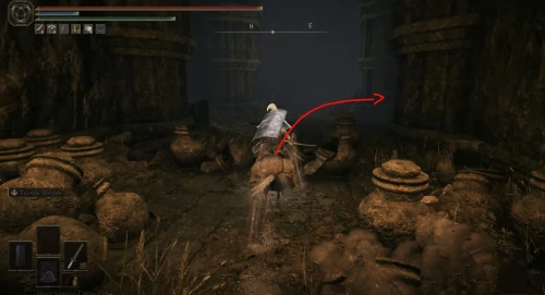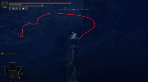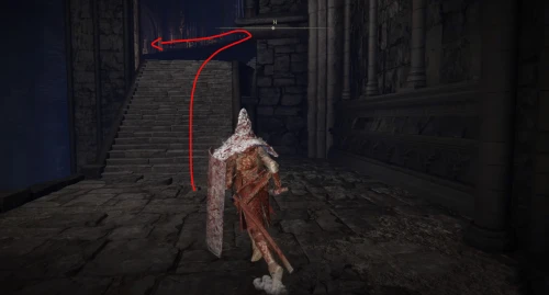 Спустившись вниз и активировав место благодати, бегите через туннель вперед, а затем сверните вправо. Спуститесь еще ниже, а потом поверните влево и продолжайте спускаться по лесенкам.