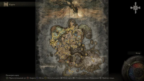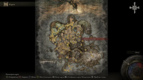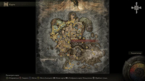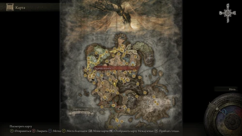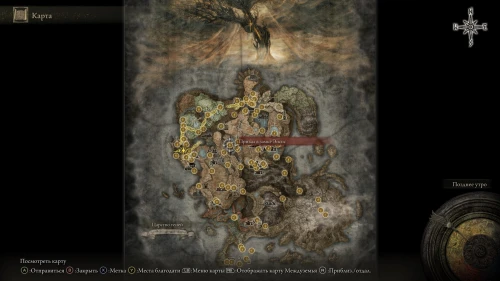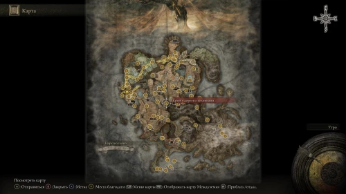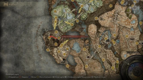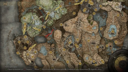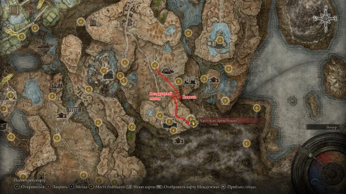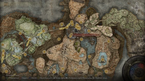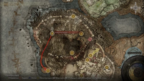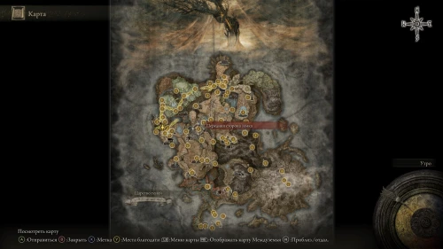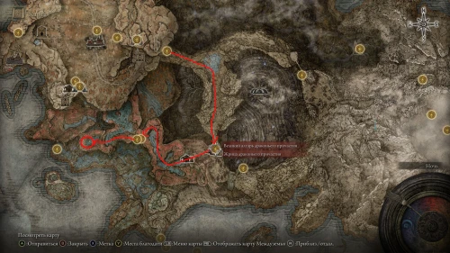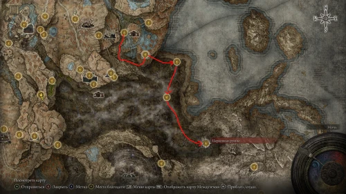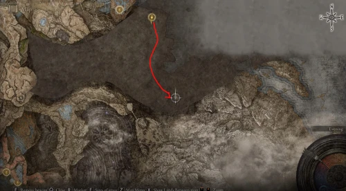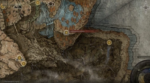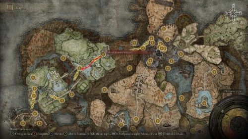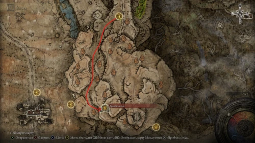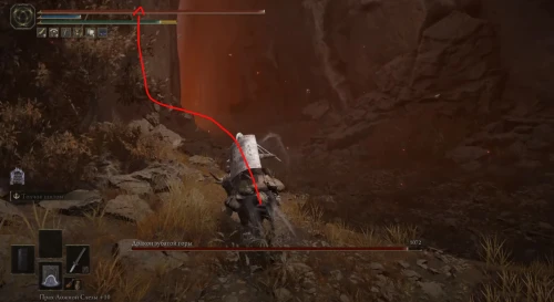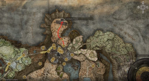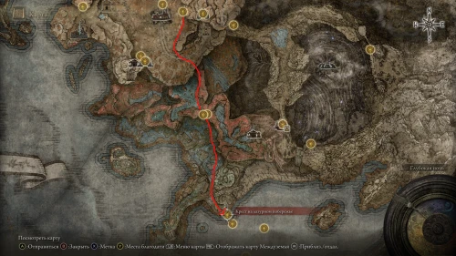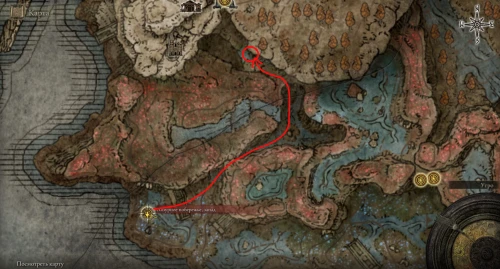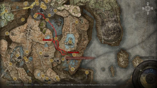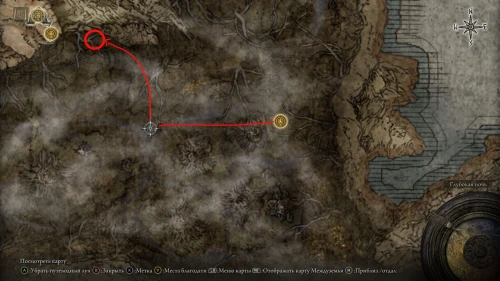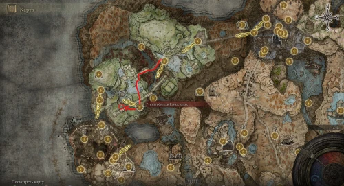 Разобравшись с боссом, пройдите через открытую дверь и активируйте место благодати «Последний привал в Драконьей яме». Выйдя из пещеры, вы окажитесь у Подножья зубатой горы. Начните двигаться на восток, пока не доберетесь до воздушного потока, который позволит вам попасть на верхнее плато. На карте ниже показан весь маршрут до нужной вам локации.
