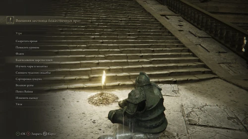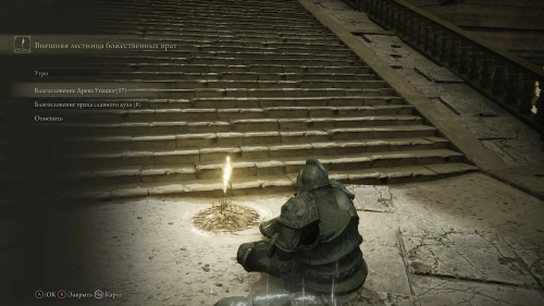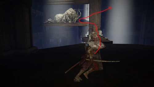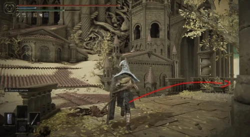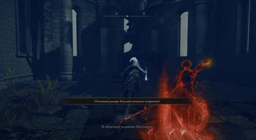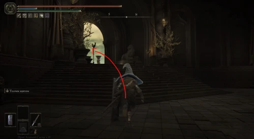 Поверните направо и поднимитесь по лестнице. Затем сверните влево и войдите в здание. Вы увидите статую Марики, под которой будет лежать нужная вам вещица. Отметим, что если вы поднимитесь выше, то активируете место благодати «Вход в темные покои». Пройдя еще дальше, вы столкнетесь с сюжетным боссом Мессмером. Разберитесь с ним, чтобы открыть доступ к следующим фрагментам.