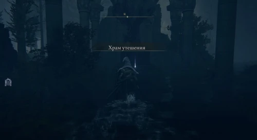 От места благодати «Равнина Надгробий», которое вы активируете практически в самом начале дополнения, двигайтесь на восток и доберитесь до Храма утешения на возвышенности. Войдите внутрь и разберитесь с несколькими противниками, а затем подойдите к статуе Марики и подберите сразу два предмета.