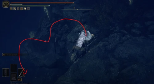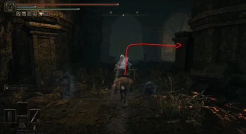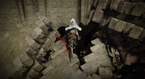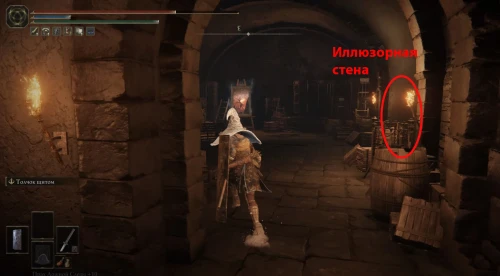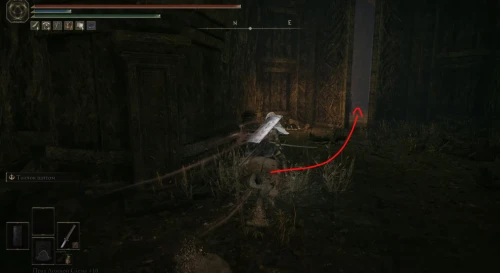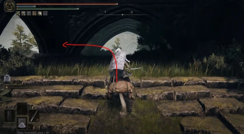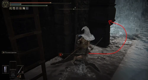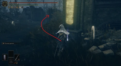 Переместитесь или доберитесь до места благодати «Малая башня у виадука», расположенного к западу от Пристанища Теней. Выйдите из крепости и скачите на запад по дороге, а затем сверните вправо и спуститесь в подвал сооружения.