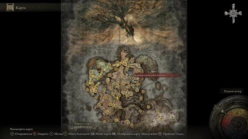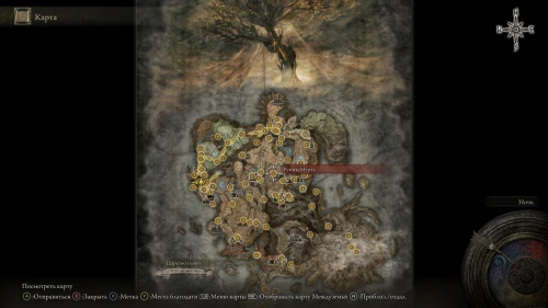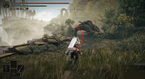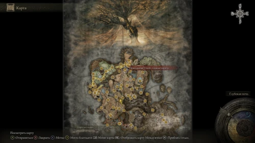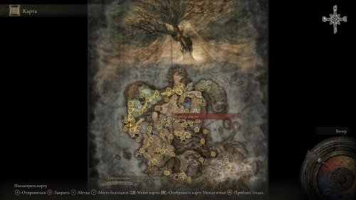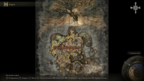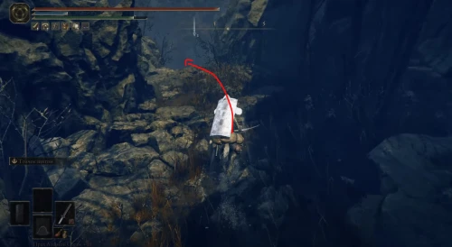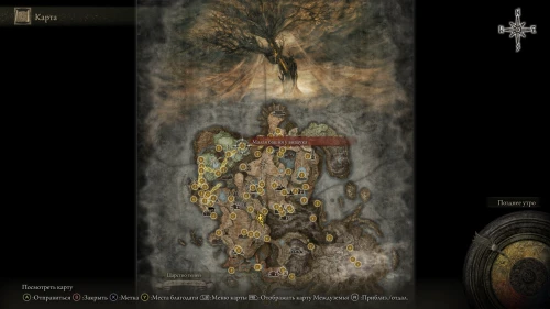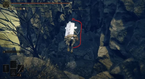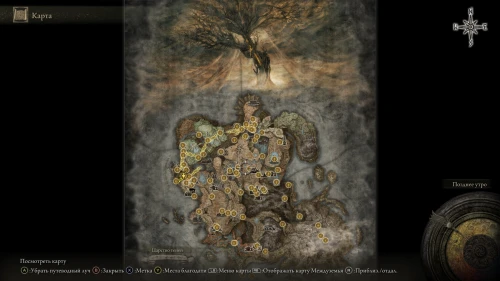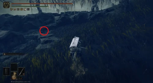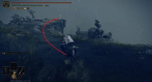 Возвратитесь к скале, и вы увидите здесь воздушный поток, с помощью которого сможете теперь взобраться на верхнее плато. Далее скачите на юг по дорожке и заберитесь на утес, где вы обнаружите очередной крест Марики, место благодати «Крест близ Древа Упадка» и нужный вам фрагмент.
