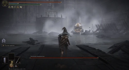 Переместитесь или доберитесь до места благодати «Пристанище Теней, главные ворота», а затем пройдите внутрь крепости и вступите в бой с Золотым гиппопотамом. Разберитесь с данным противником, чтобы получить с него сразу два фрагмента.
