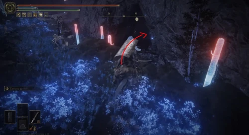 Переместитесь или доберитесь до места благодати «Лазурное побережье, запад», а потом скачите на север в ущелье. Войдя в него, начните двигаться в северо-восточном направлении к водопадам. Пройдите мимо призрачных червей и сверните в проход слева. Затем спрыгните с выступа и войдите в пещеру.