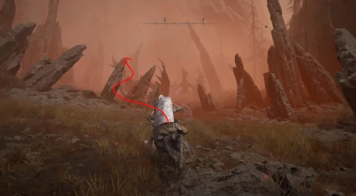 Снова возвратитесь к «Руинам Мурта», а потом бегите на юго-восток, пробежав мимо каменной арки. Двигайтесь к скрюченным деревьям на холме и продолжайте идти в юго-восточном направлении, пока не приблизитесь к скале. Затем идите вдоль нее налево и обойдите гору. В тупике вы обнаружите камень, от которого исходит воздушный поток, – разломайте его, чтобы открыть духовный источник позади.