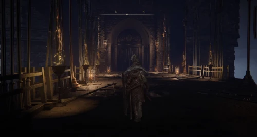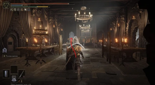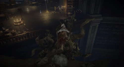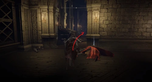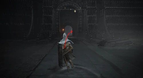 Далее войдите в столовую, где нужно пройти через проход на юго-востоке. Снова оказавшись снаружи, продолжайте бежать в юго-восточном направлении, а потом сверните на северо-восток, пройдите мимо огненного рыцаря и воспользуйтесь подъемником.