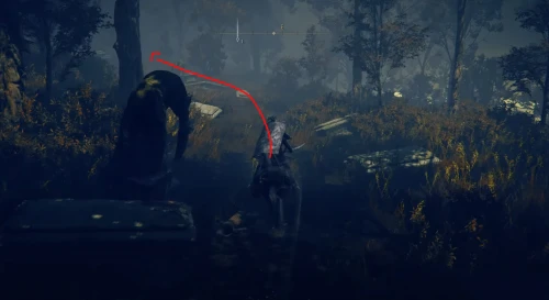 Двигайтесь на запад, и вскоре вы заметите впереди труп с белым огоньком, прислоненный к большому дереву. Взаимодействуйте с ним для получения нового фрагмента.