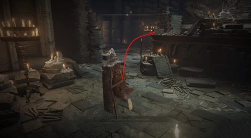 Доберитесь или переместитесь к месту благодати «Малый частный алтарь», находящемуся в Белурате, а затем пройдите через западный проход и поднимитесь по ступенькам наверх. Повернитесь налево, поднявшись по еще одной лестнице, а потом сразу же сверните вправо. Дойдя до тупика, снова поверните влево.