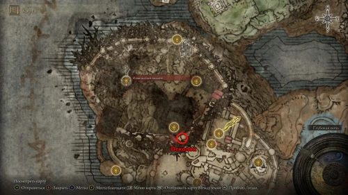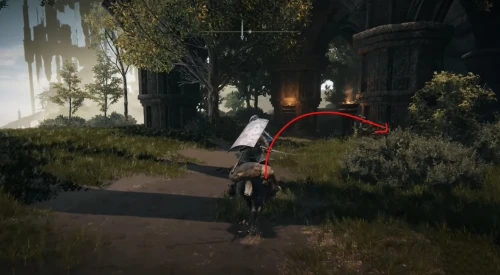 Доберитесь или переместитесь к месту благодати «Передняя сторона замка», расположенному неподалеку от прохода в замок Энсис. Затем начните двигаться на юго-запад и вскоре вы увидите статую Марики, у подножья которой и будет лежать необходимый вам предмет.
