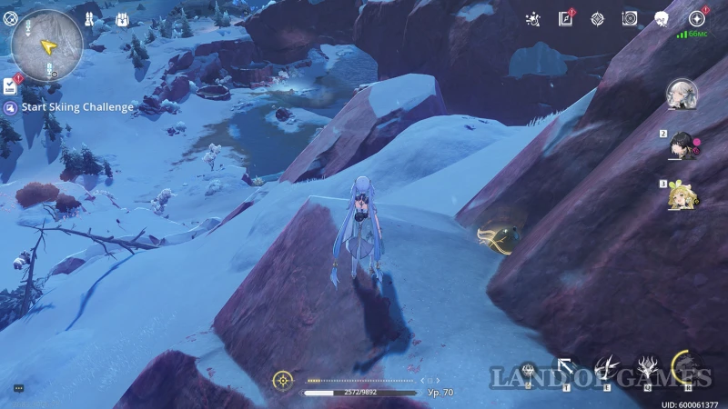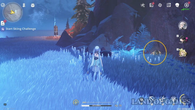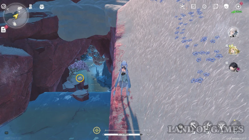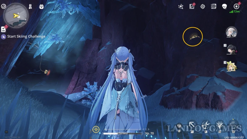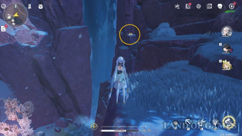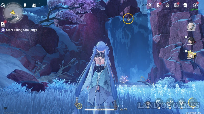 От предыдущего места пройдите на восток к ближайшему водопаду, спуститесь до его середины и соберите колокольчик на каменном выступе с северной стороны от вертикального потока.