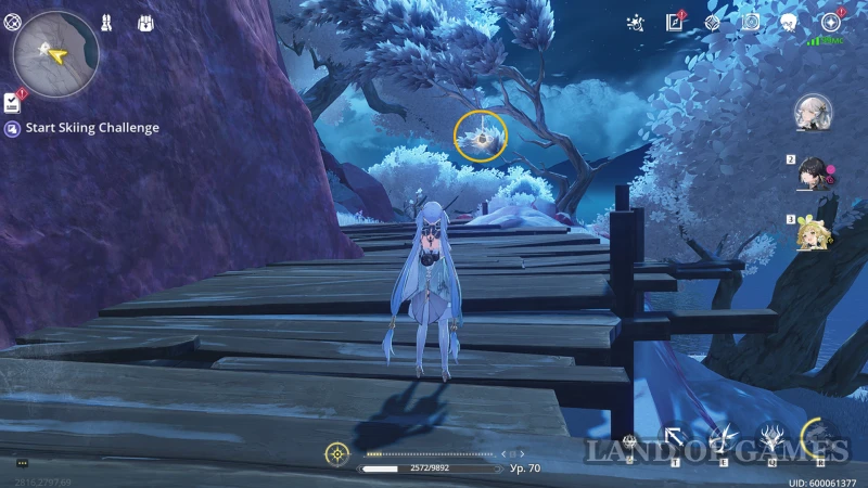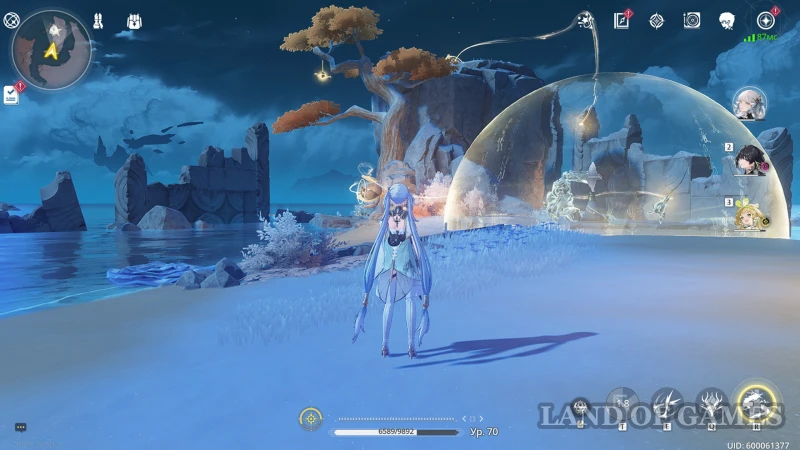 Используйте маяк перемещения около Тактической голограммы «Tactical Hologram: Crownless» (северо-восточная часть острова) и следуйте вперед по полуразрушенному деревянному мосту — в его конце растет дерево с очередным Ветряным колокольчиком.