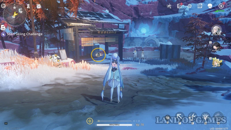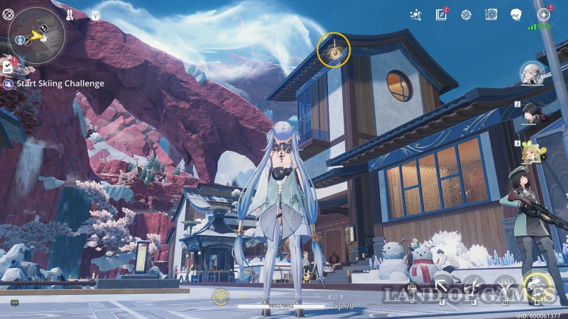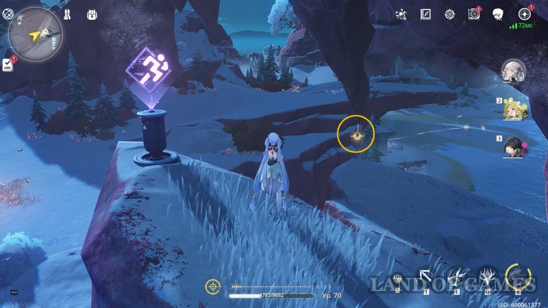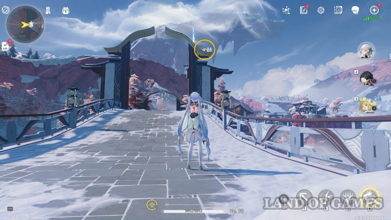 Телепортируйтесь к указанному на карте месту, под каменный мост на юго-восточной половине Горы Поднебесья: в пределах этой локации можно найти сразу два колокольчика.