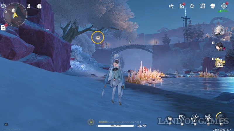 Перемещаемся под «шею» Драконьего гребня, а затем пробегаем под мост: колокольчик лежит в кустах по стороне резонансного маяка.