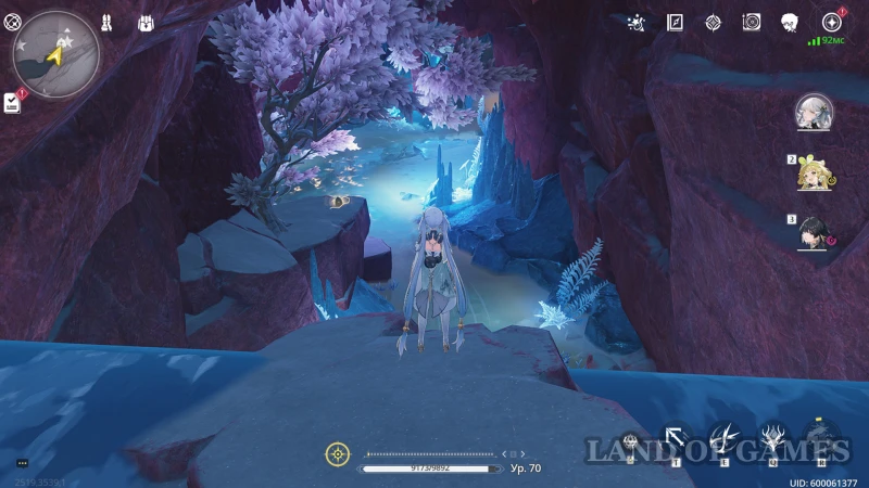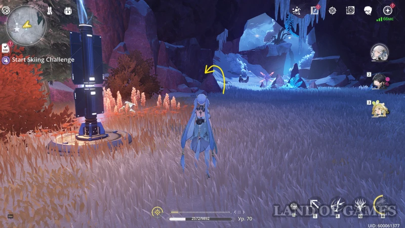 На первом скриншоте выше отметили место входа в пещеру под холмом к западу от Драконьей гряды — здесь можно залутать очередной колокольчик.