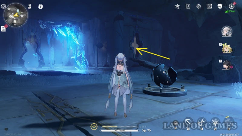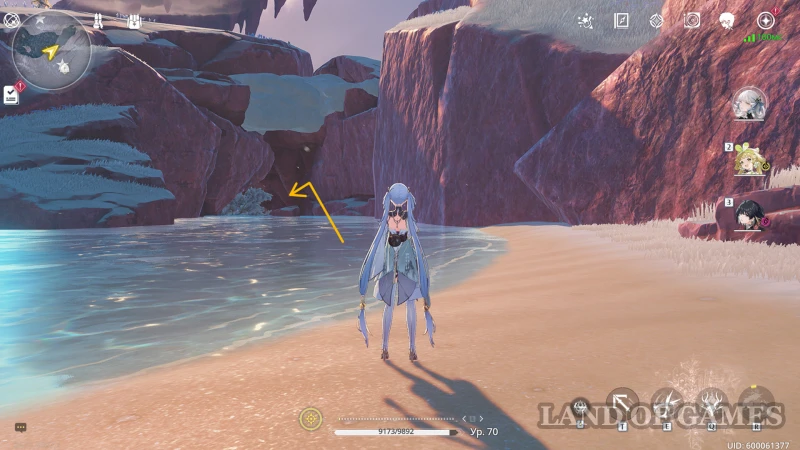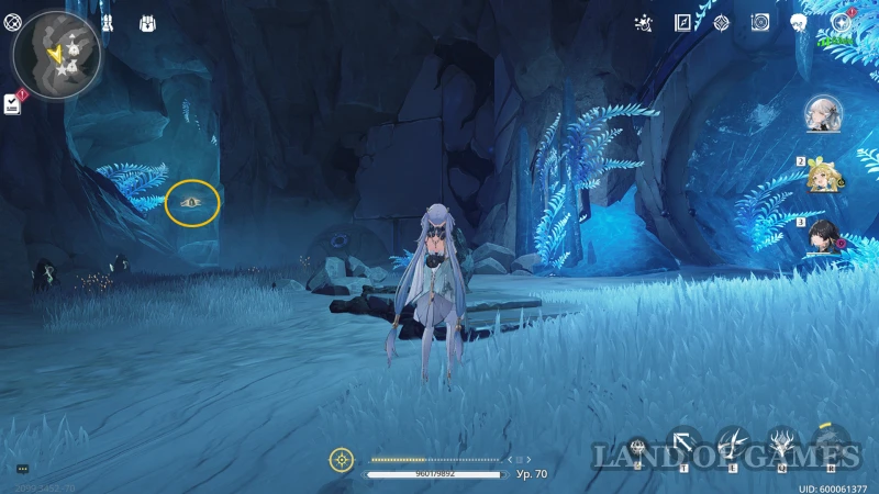 Это уже вторая подземная область: вход можно найти на пляже к северу от Драконьей палаты (метка алмаза на скриншоте выше). Обратите внимание, что без выполнения сюжетного поручения «Восход Цзиньчжоу» эта каменная круглая дверь будет закрыта.