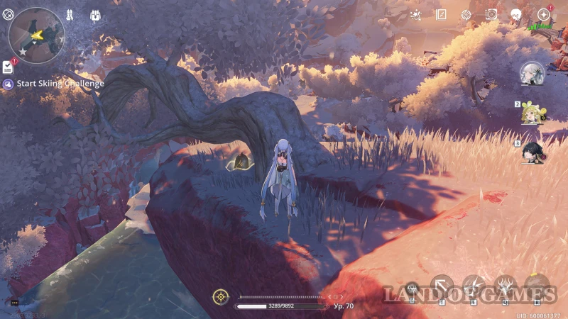 Затем спуститесь в водоем под водопадом, с которого собрали прошлую реликвию, и сбейте еще одну на небольшом деревце с розовой листвой.
