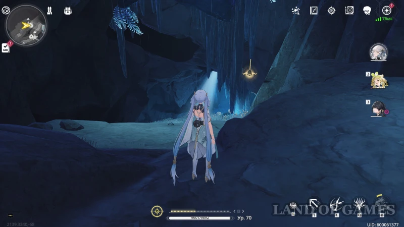 И последняя музыкальная реликвия спрятана в пещере за водопадом, вход в которую находится к западу от Дерева Тяньцю (над ним мы находили Windchimer 45), за монументом с ромбом.