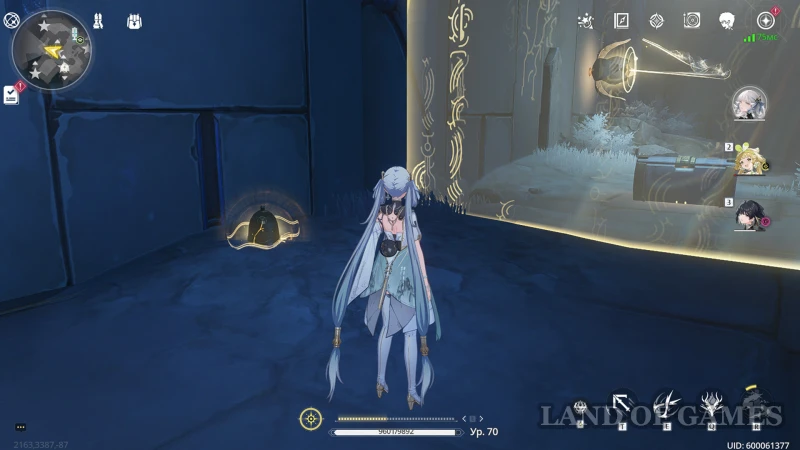 А для получения второго нужно найти механизм Трансформации в Лязг-Баха (его видно на первом скриншоте выше). Измените облик на замороженный кубик и подбегите к перекрытой льдом дыре неподалеку (к ней ведет золотистый шлейф от фотонного барьера). Спуститесь в катакомбы и загляните под сточный канал, чтобы собрать еще один Ветряной колокольчик.