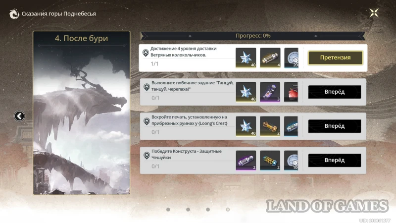 Вдобавок, на время ивента «Сказания горы Поднебесья», приуроченного к выходу версии 1.1, вы можете залутать еще 40 астритов (и немного расходных ресурсов) по достижению 4 уровня магазина Ветряных колокольчиков Сяньгэ. Их можно собрать в последней вкладке события, — «Поле бури».