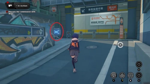 Отправляйтесь обратно, в сторону видеопроката. Напротив Random Play стоит стенд Хаула с газетами. От него идите по дороге, в сторону инспектора Мяучело.